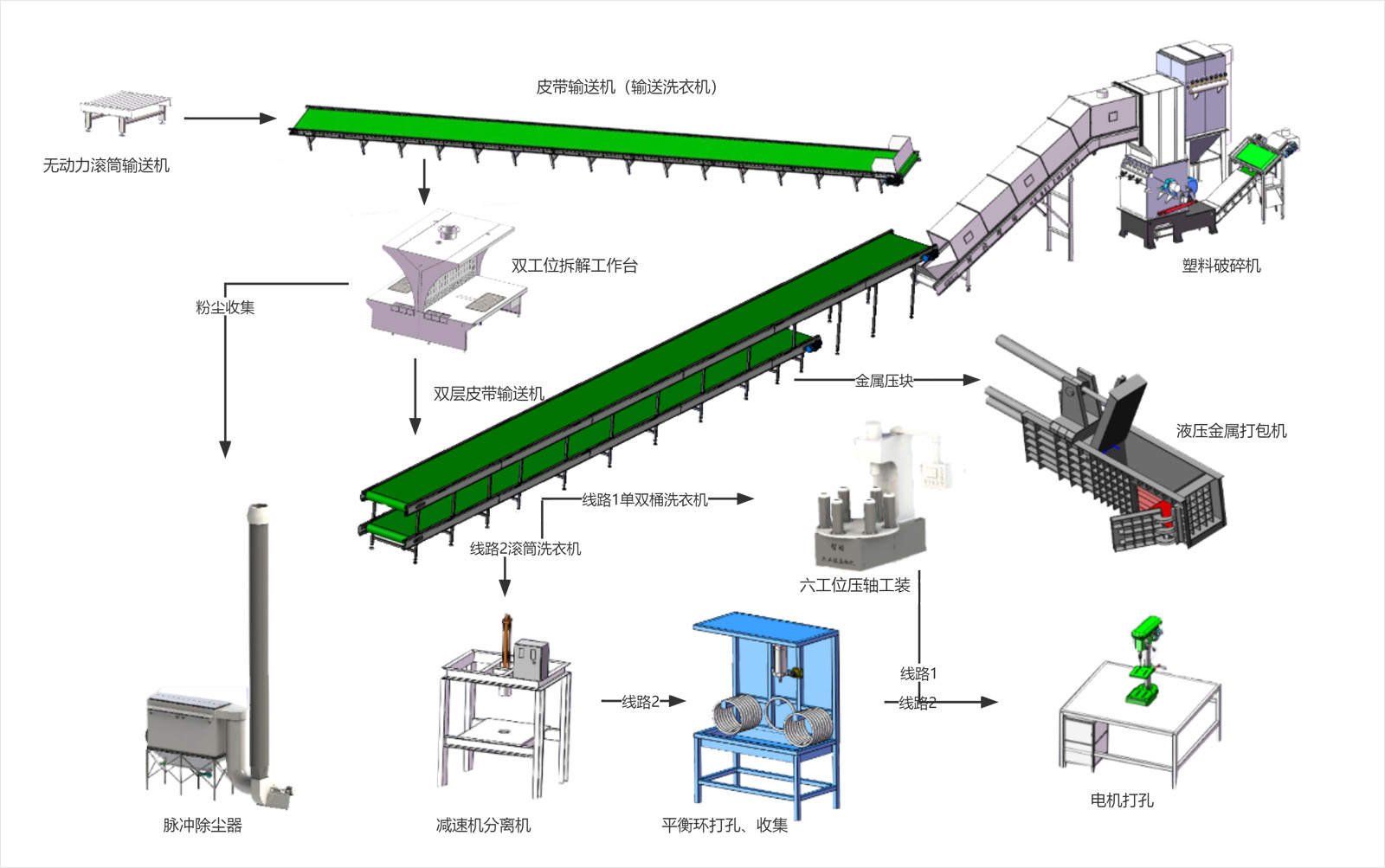 简介:废旧洗衣机属于可回收垃圾,在再生资源回收与循环利用的大环境下,我们生产了一整套的废旧洗衣机拆解破碎生产线。可快速有效的回收废旧洗衣机里的可利用资源。废洗衣机拆解平台采用新拆解技术,实现废旧洗衣机拆解再利用;拆解过程无废气废水产生,无粉尘泄露,符合国家环保要求。